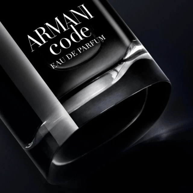 Le flacon de l’eau de parfum Armani Code exprime une vision moderne du luxe. D’un noir intense, à la forme carrée et arrondie, il possède une base en verre épurée. Sous le capot portant le monogramme Giorgio Armani, une plaque argentée accroche la lumière pour un contraste sophistiqué.