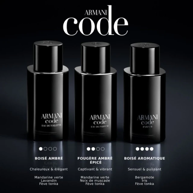 Giorgio Armani présente Armani Code Eau de Parfum : un parfum captivant et vibrant, encapsulé dans un flacon rechargeable.