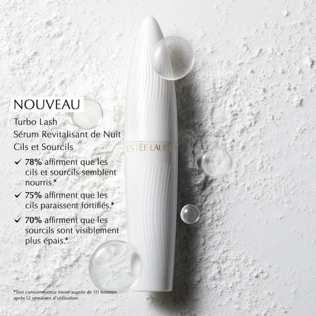 Chaque nuit, prenez soin de vos cils et de vos sourcils avec le nouveau sérum Turbo Lash cils + sourcils. Un sérum de nuit puissant qui fortifie, nourrit et revitalise les cils et les sourcils. Formulé avec un complexe épaississant incluant 16 acides aminés, de la protéine de riz, du panthénol et de l’acide hyaluronique, le sérum Turbo Lash renforce et allonge les cils pour leur donner une apparence plus dense. Les cils et sourcils semblent plus épais, plus sains, plus résistants. Vos cils revitalisés sont prêts à être habillés du Mascara Turbo Lash.