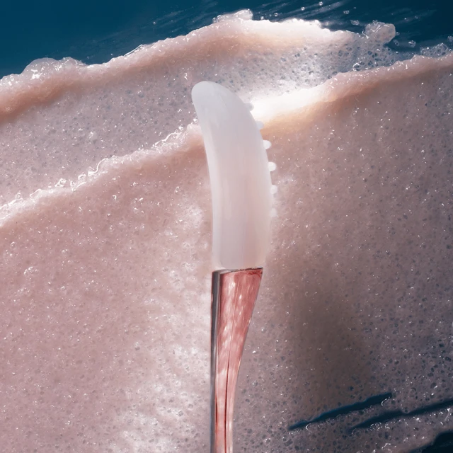 Un applicateur innovant à double face permet une application uniforme et stimule la microcirculation.