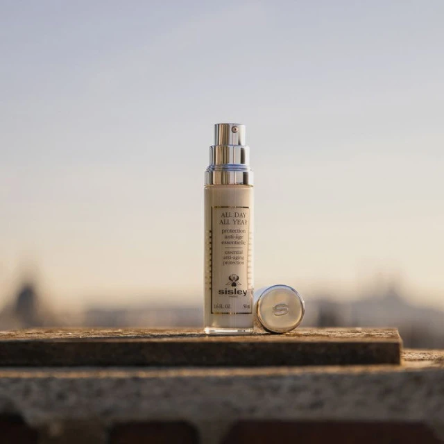Pendant la journée, notre peau utilise son énergie pour se protéger. Soin de jour parfait, All Day All Year l’accompagne en agissant comme un bouclier global qui, à la fois protège la peau et active ses mécanismes d’auto-défense*, pour préserver une peau d’apparence plus jeune, plus longtemps. Pour concevoir All Day All Year, les Laboratoires Sisley ont étudié les facteurs environnementaux et endogènes auxquels nous sommes exposés durant notre vie. Ces facteurs, que l’on regroupe sous le terme scientifique exposome, comprennent notamment les radiations solaires, la pollution, le tabac, etc. Ils sont responsables de 80% du vieillissement cutané. La formule complexe et hautement concentrée d’All Day All Year protège la peau des agressions qui la vieillissent prématurément et renforce son pouvoir de défense* grâce à ses deux boucliers complémentaires, physique et biologique.