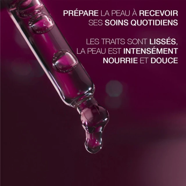 Lisse visiblement les rides et ridules, revitalise la peau et illumine le teint.
