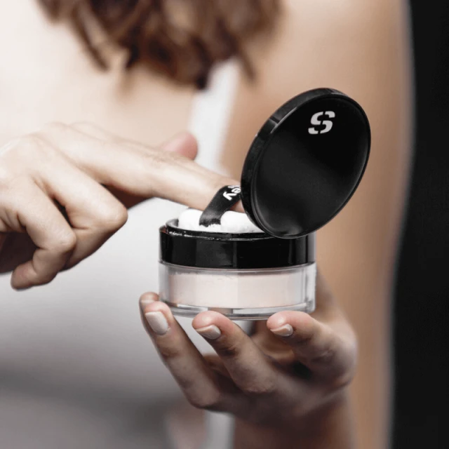 Appliquer avec la houppette par légers tapotements sur l’ensemble du visage, en insistant sur la zone T. Enlever l’excédent au pinceau, si besoin. Pour une couvrance plus légère, appliquer uniquement au pinceau.