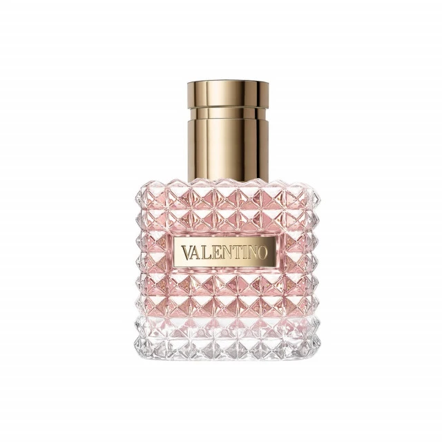 Le flacon de l’eau de parfum Valentino Donna est un concentré de chic exquis. Le verre finement ciselé, identique à la fragrance Valentino uomo, renvoie aux ouvrages de verrerie du siècle dernier. Lourd en main, on se laisse séduire par la qualité sans âge de ce flacon aux multiples facettes. Le jus, quant à lui, se drape d’une couleur subtilement rosée à l’évocation de la douceur et de la femme : la Donna.